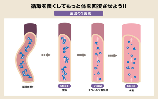 ・Step3 ➡ 水素効果 血管を広げゴースト血管に新鮮な血液を送り込み末端の老廃物を除去する