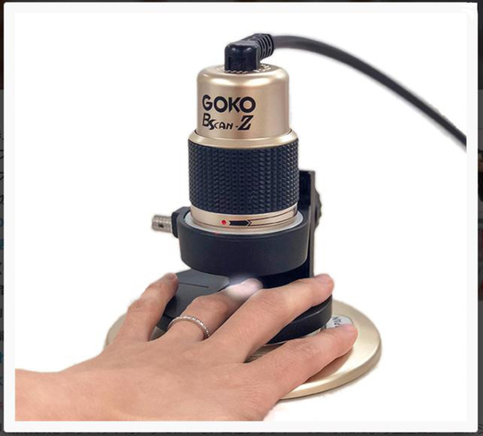 緑色に見えるのは老廃物・疲労物質なので、血管の血流状況が確認でき、寝不足や疲れている方は緑が強く出ます。