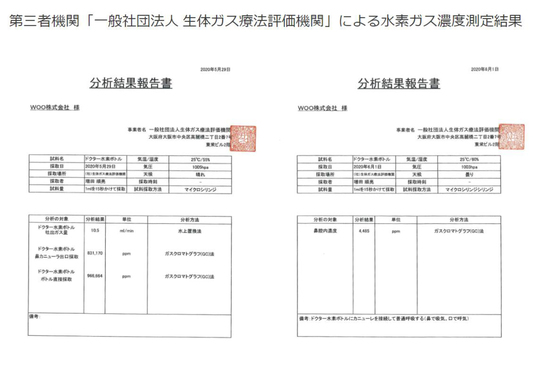 第三者機関による水素濃度測定(ガスクロマトグラフ法)による高い信頼性