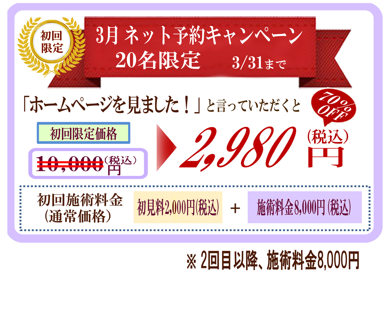 受付時間 | 10:00~20:00(日曜・月曜を除く) |