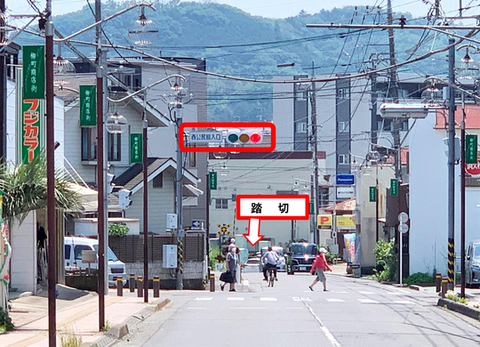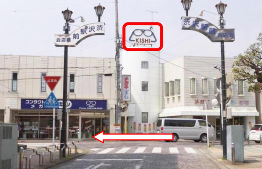 4,踏切を渡ると、右側に「キシメガネ店」が