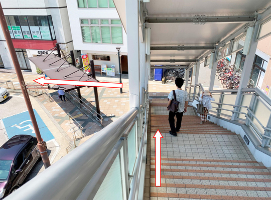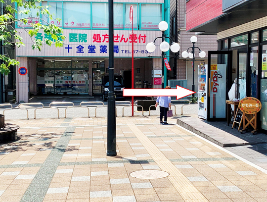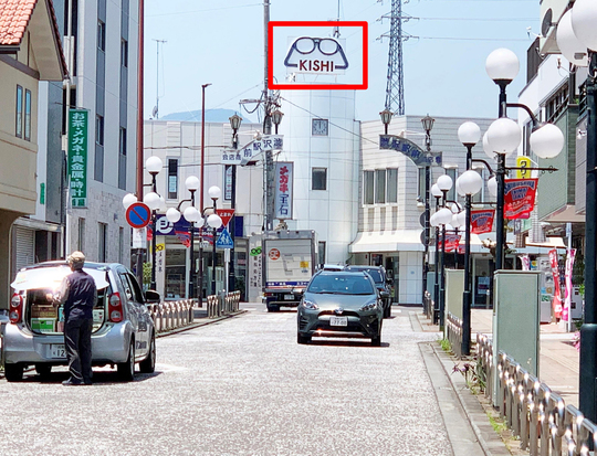 6.「キシメガネ店」のつきあたりを左に曲がります