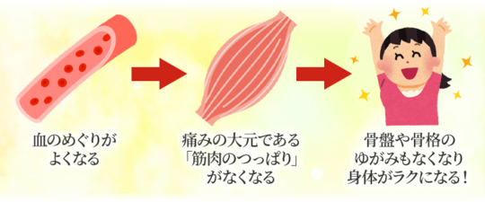 腰痛や肩こり・むくみ・頭痛の改善が実現できます。
