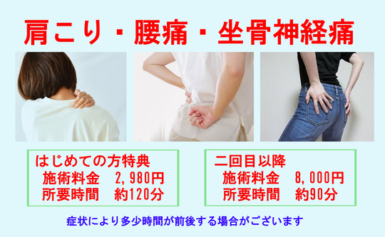 腰痛・肩こり・背中や首の痛みなど、つらい症状を改善していきます。