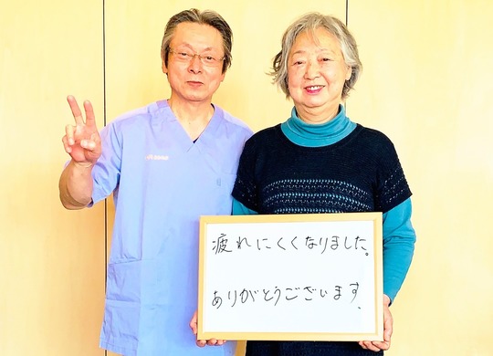 もつと早く先生にお会いしていたら身体がこんなに曲がらないですんでいたのにと後悔もありますが、これから先、先生に施術をしてもらい今までの様なつらい身体からサヨナラしたいです。