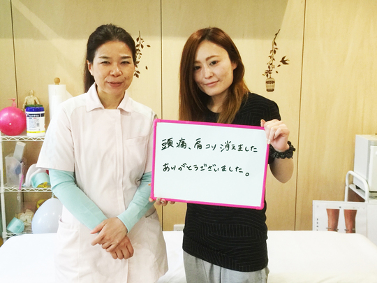 足首が原因で、バランスがくずれて頭が前に出て、肩の筋肉が引っぱられて肩こり・頭痛になっていたことがわかり、自宅でできるセルフケアもアドバイスしていただき、3回目で頭痛薬を手放すことができました。